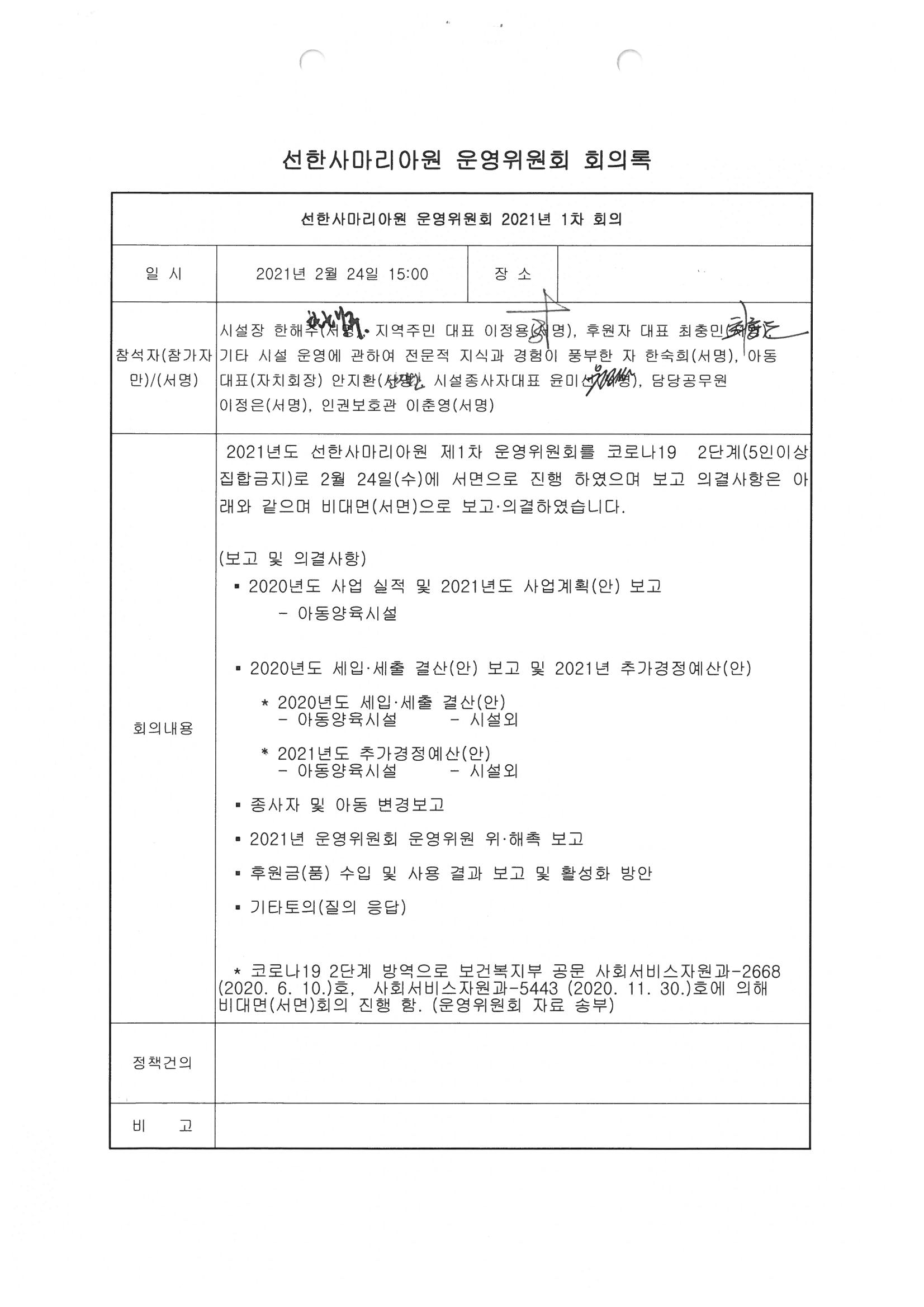 2021년 1차 시설운영위원회 운영회의 결과 | 선한사마리아원 | 2,312 | 2021-02-24 |