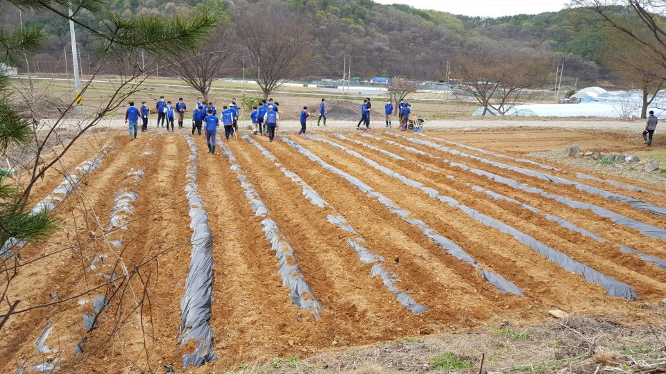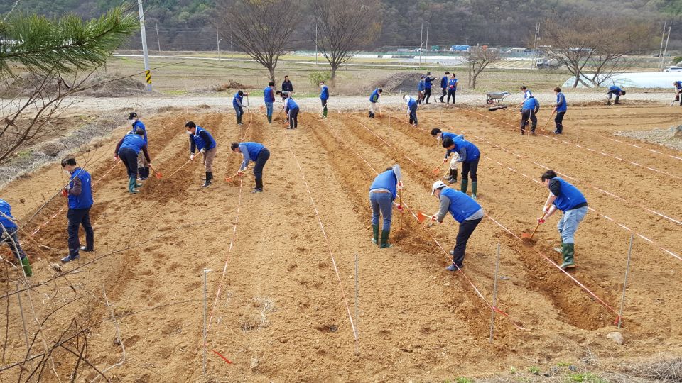 삼성OLED 임직원분들께서 고구마 밭 일구기 및 꽃 심기 봉사활동을 해주셨습니다. |
