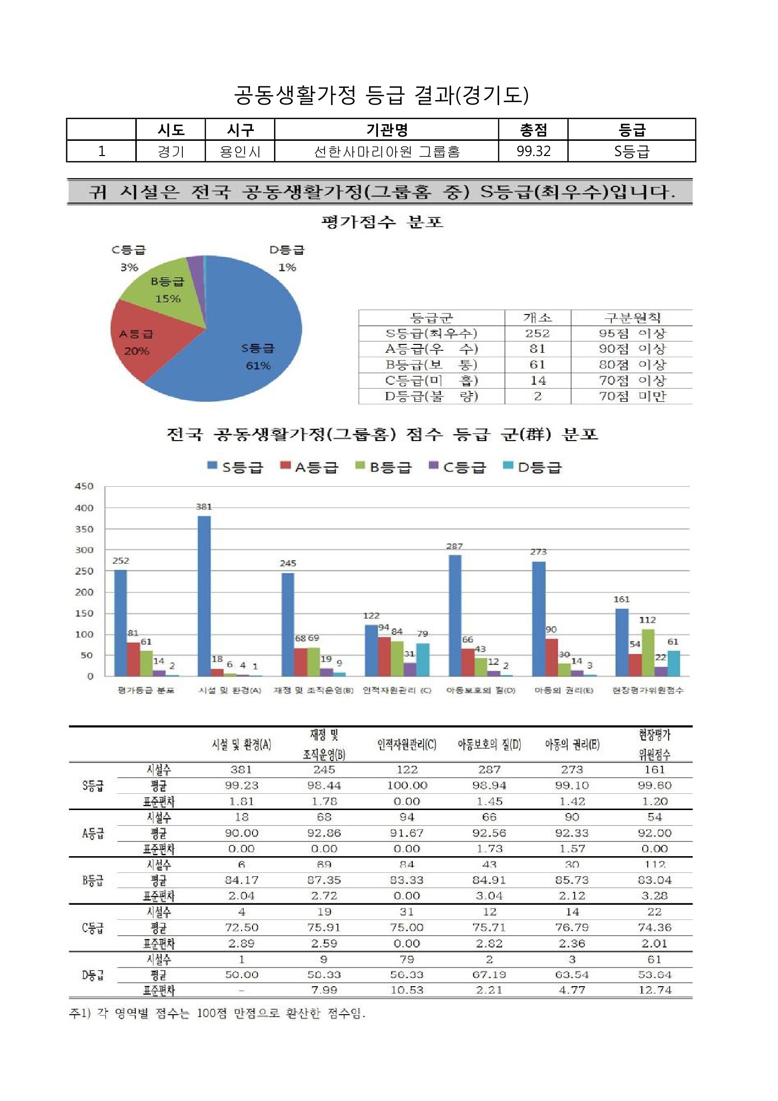 전국 공동생활가정 중 'S' 등급을 획득했습니다.