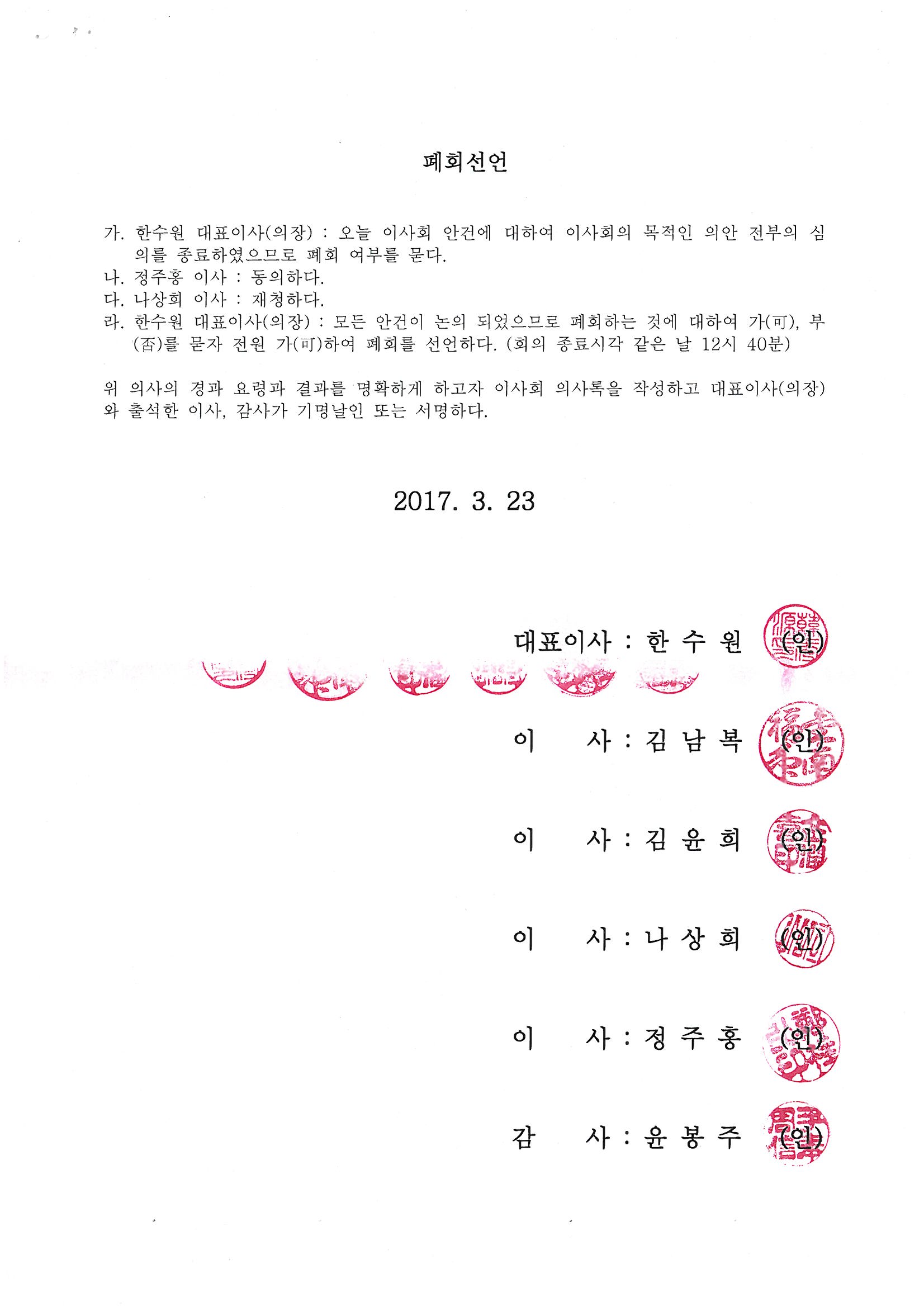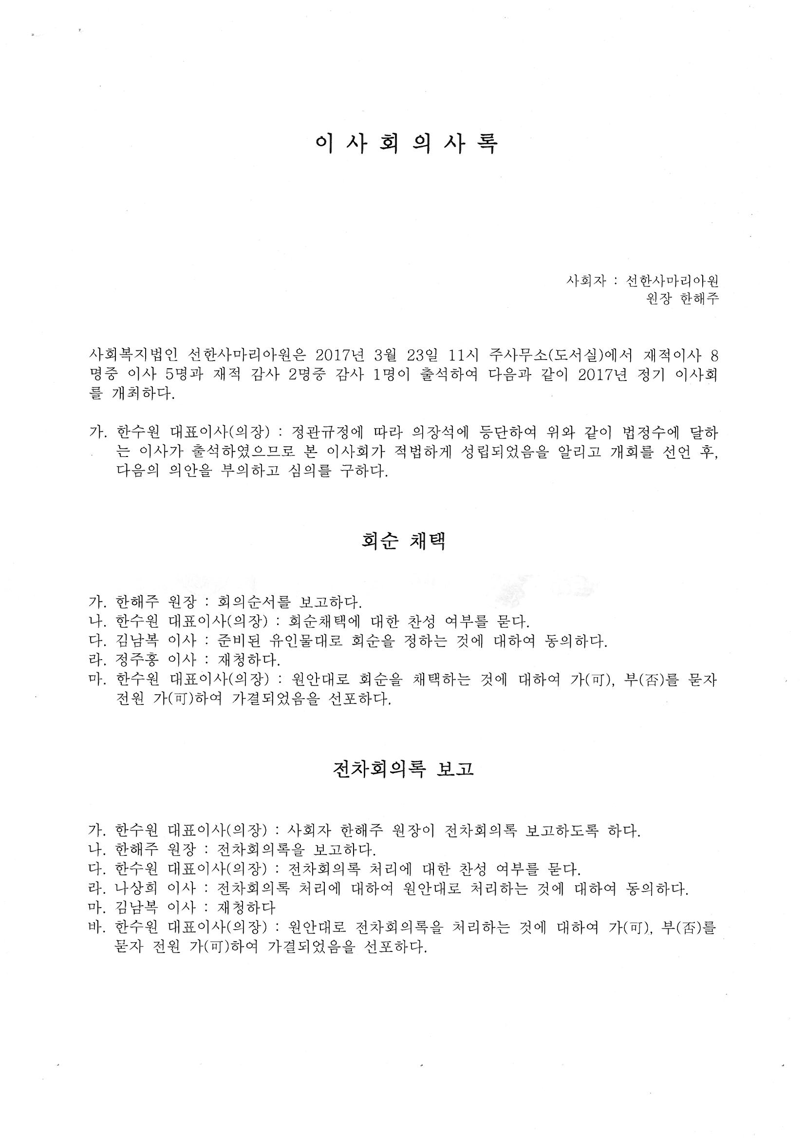 | 2017년 사회복지법인 선한사마리아원 정기 이사회 회의록 공개(20170323)