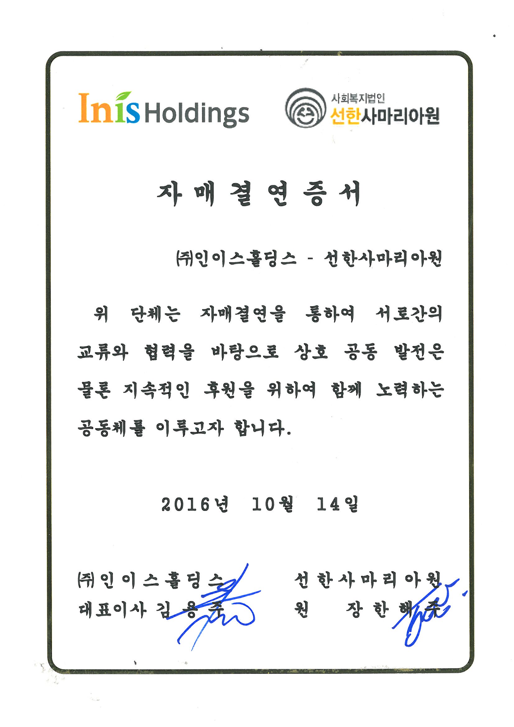 (주)인이스홀딩스-선한사마리아원 자매결연식 | 선한사마리아원 | 4,889 | 2016-10-14 |