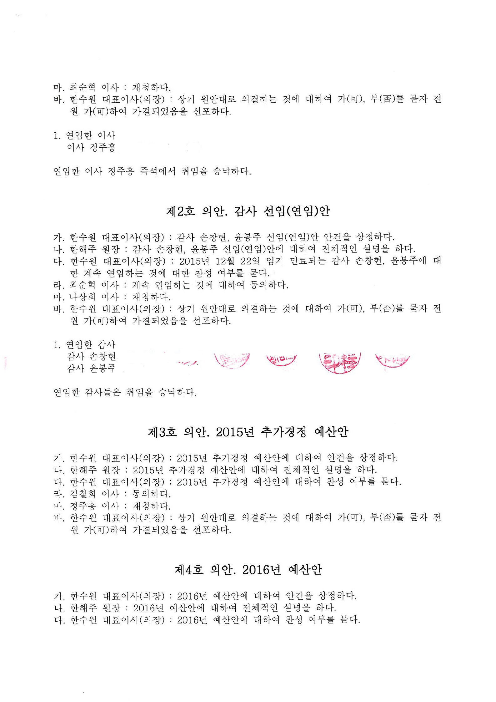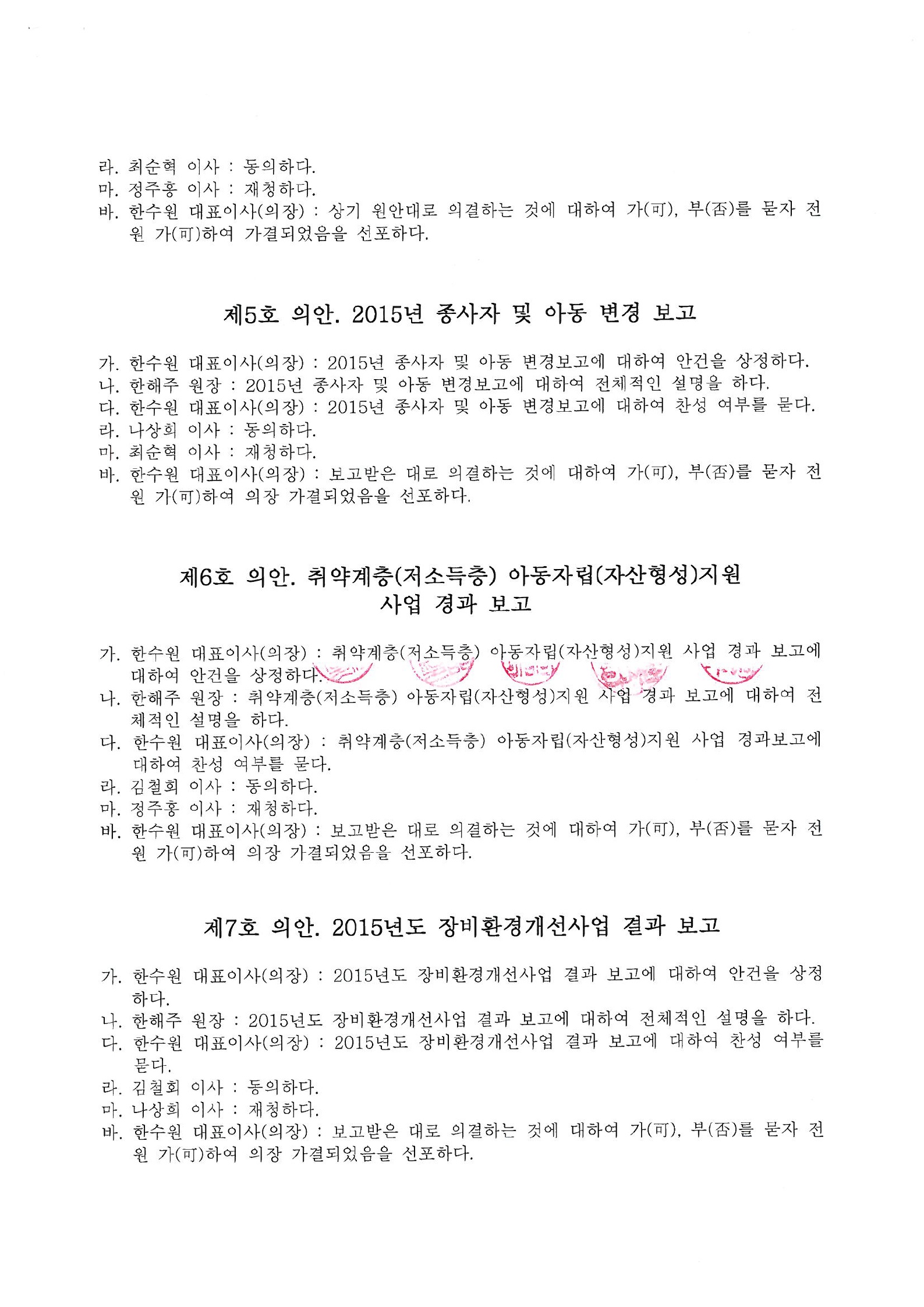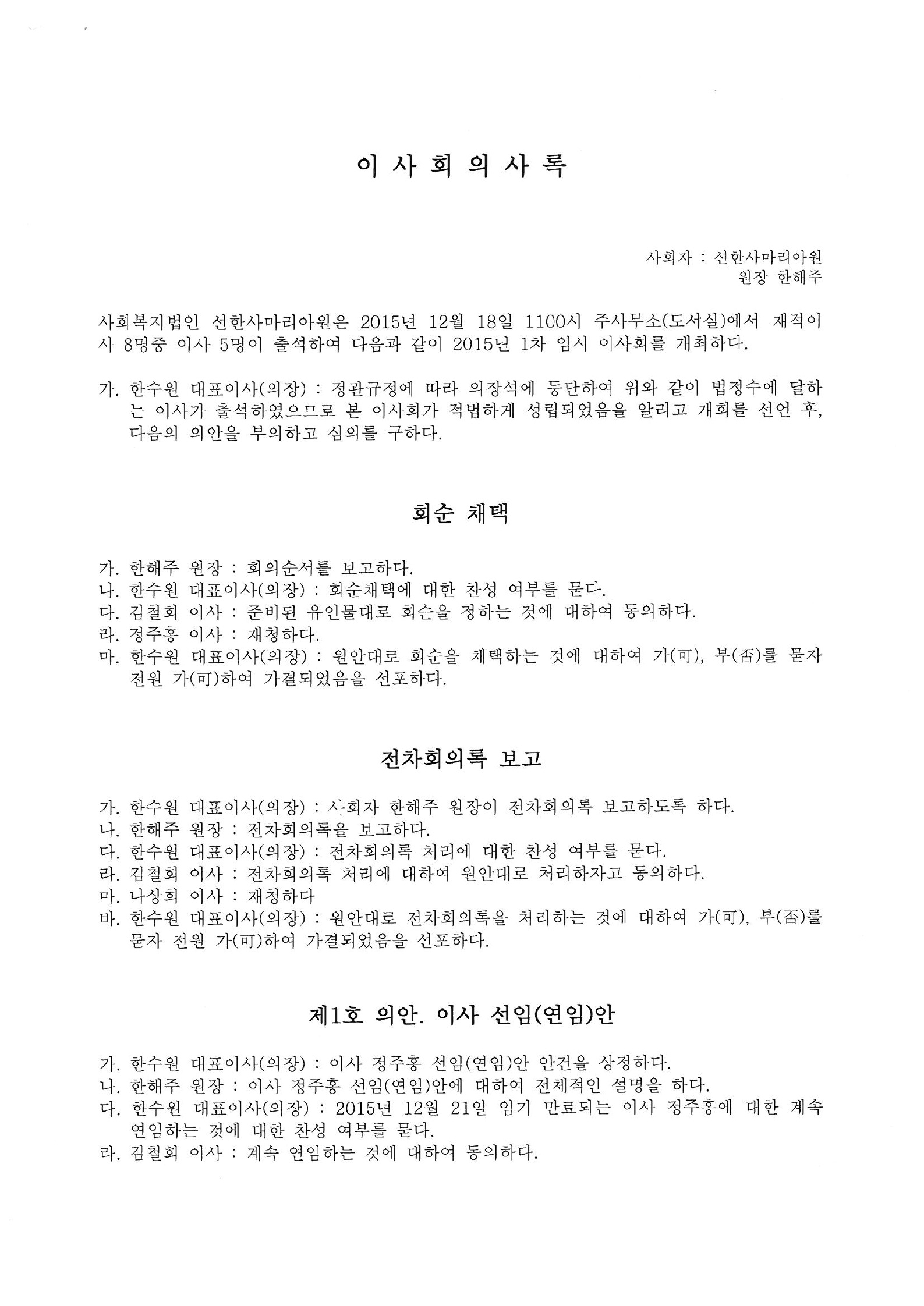 | 2015년 사회복지법인 선한사마리아원 1차 임시 이사회 회의록 공개(20151218)