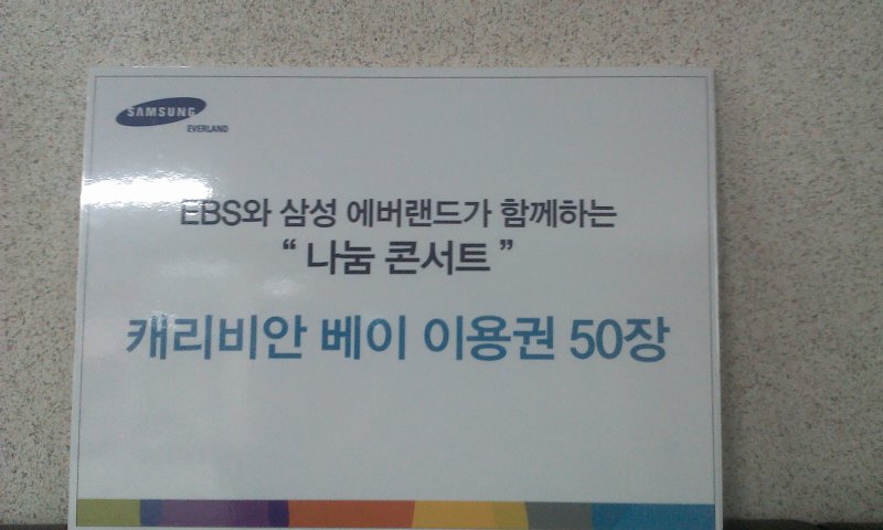 에버랜든에서 6월 23일 아름다운 콘서트 행사로 EBS 모여라 딩동댕 공연후 '번개맨'이 캐리비안 베이 이용권 50장을 전달해주었습니다. 여름에 아이들을 어떻게 하면 시원하게 해줄 수 있을까 했는데 에버랜드에 감사... 고민 끝! |