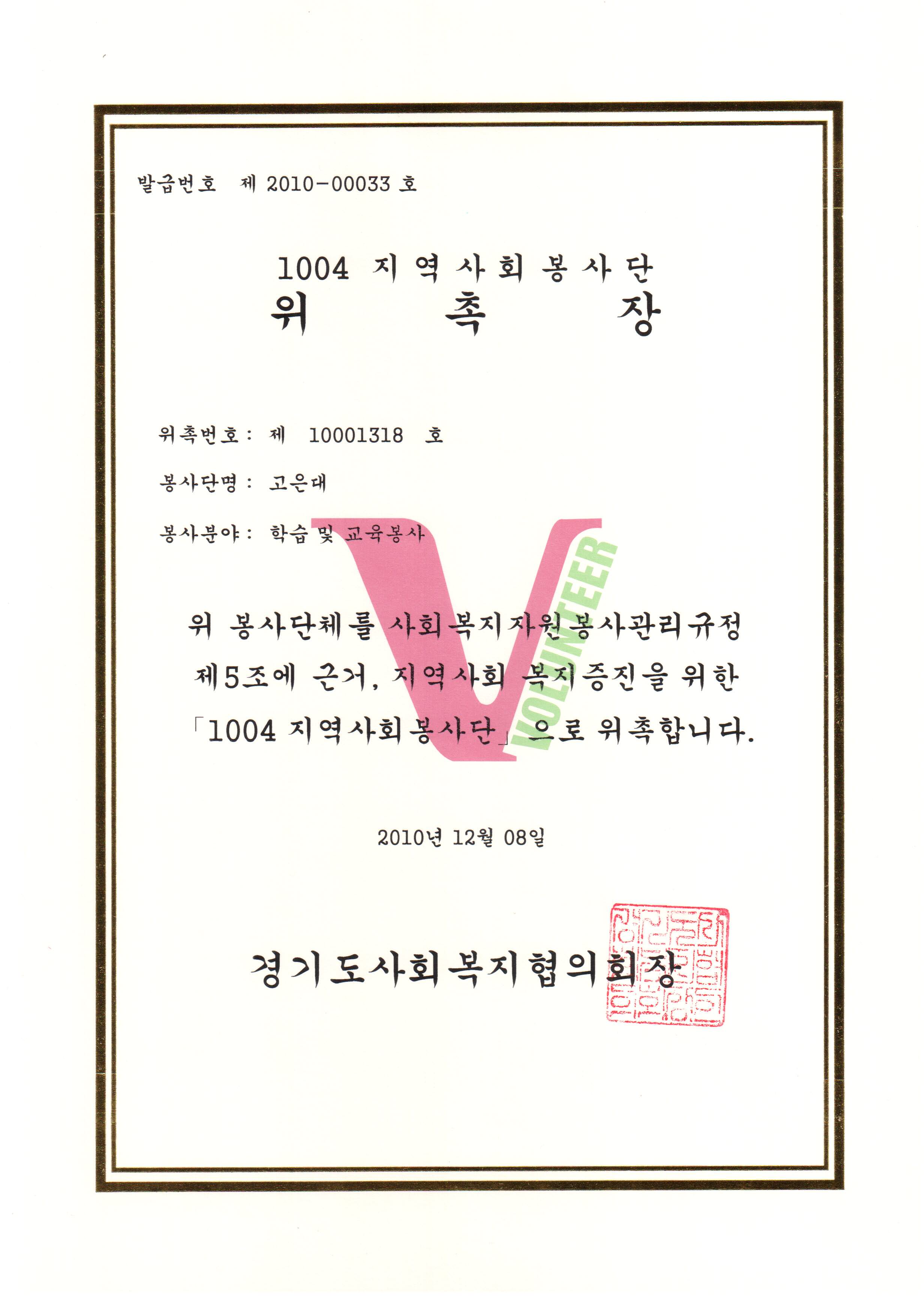 | 고은대 1004 지역사회 봉사단 위촉