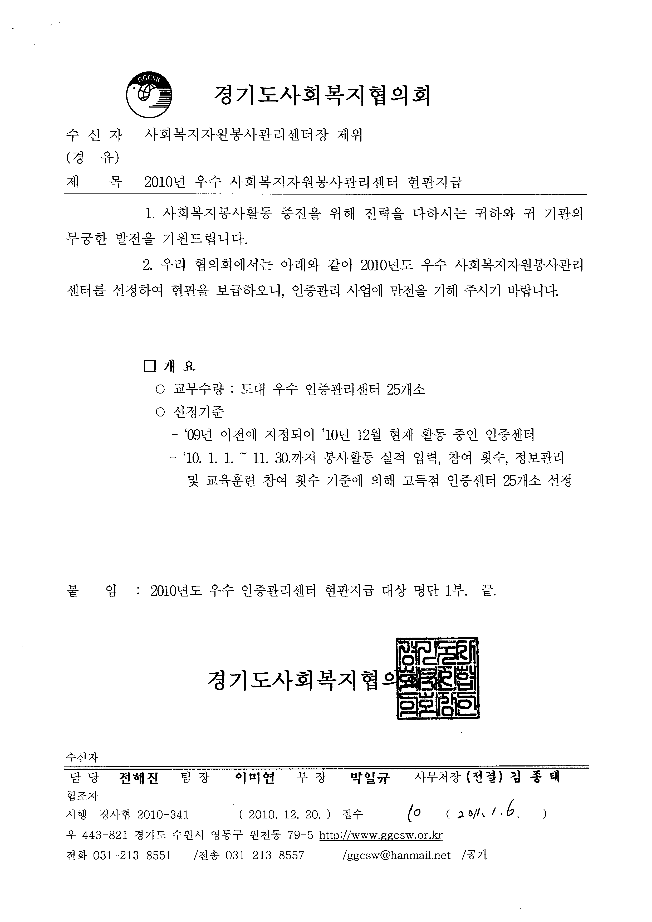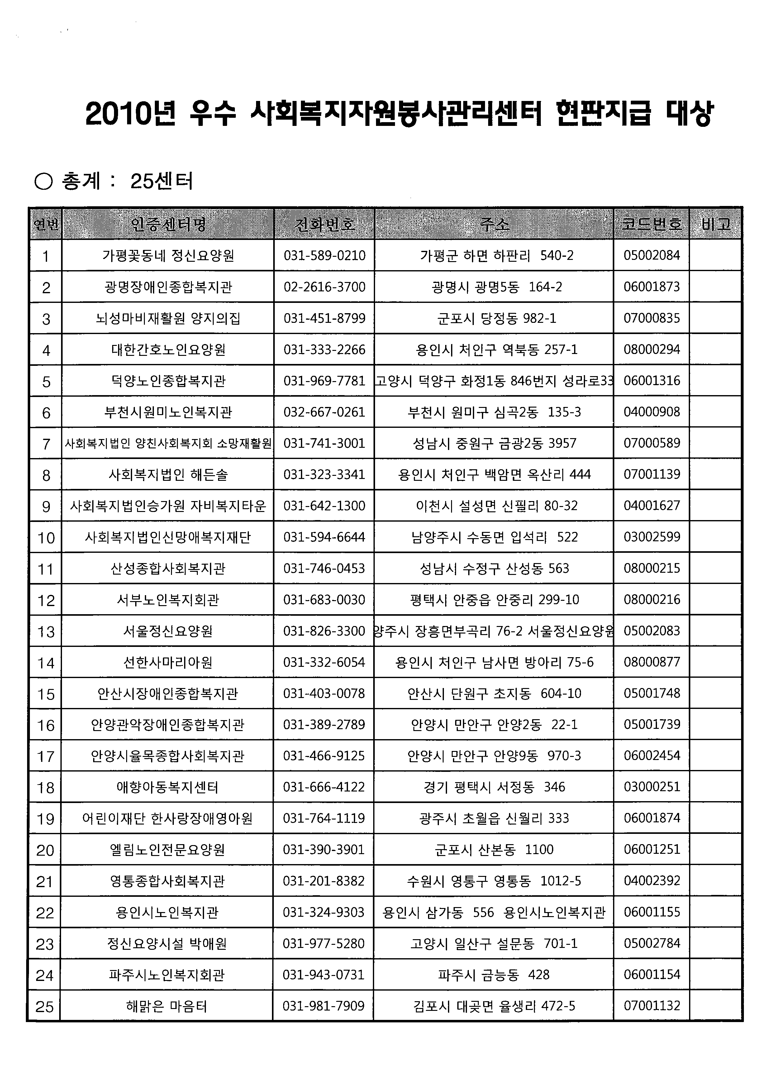 | 2010년 우수 사회복지자원봉사관리센터 선정